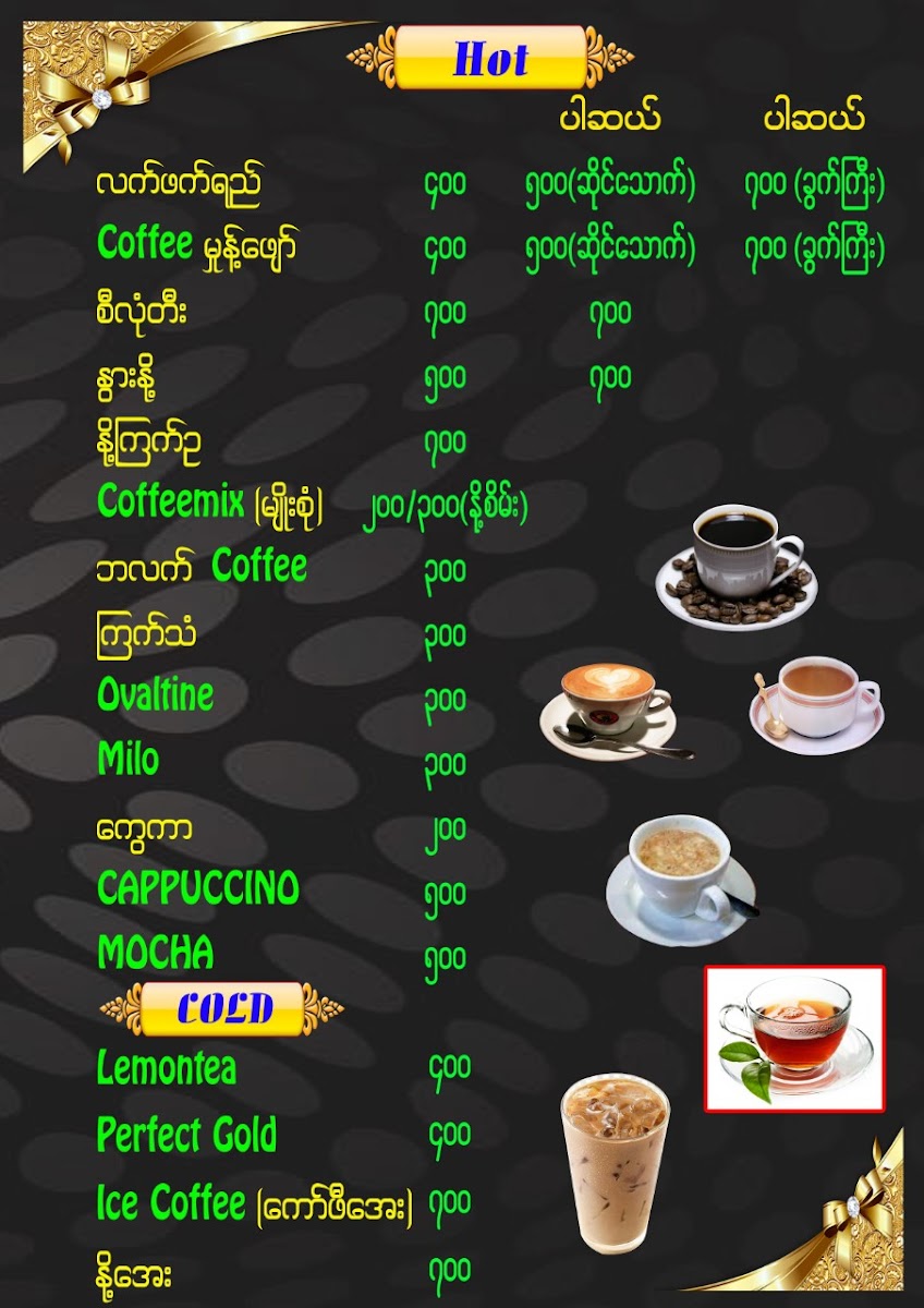 ONE လက်ဖက်ရည်နှင့်စားဖွယ်စုံ-Dedaye Menu